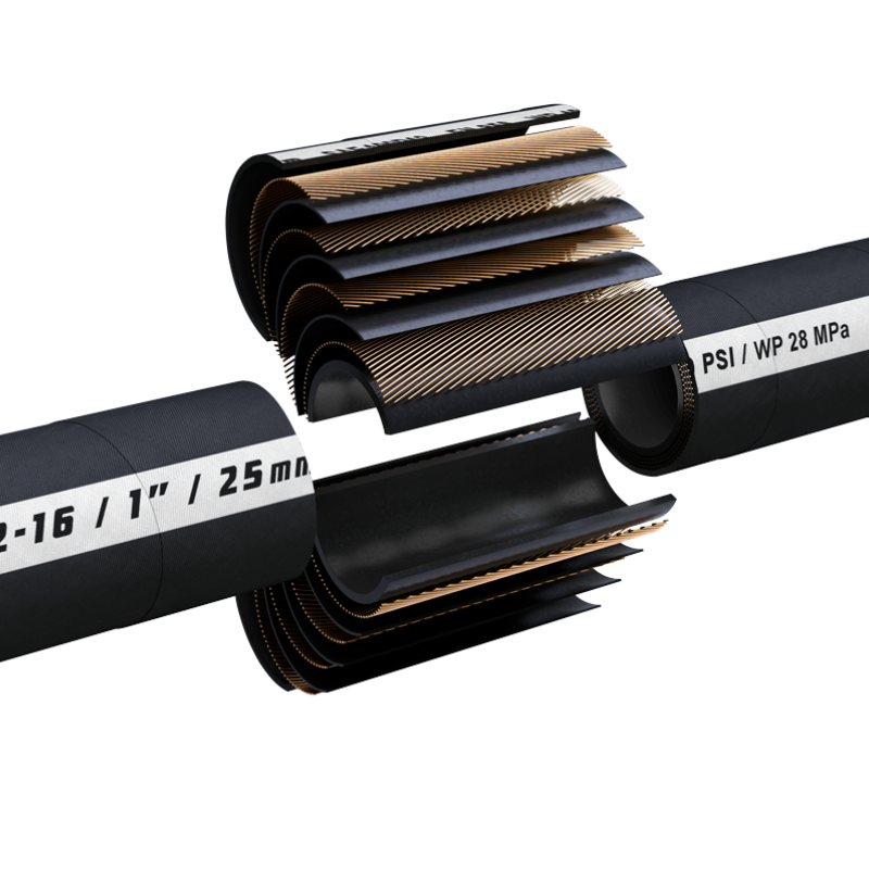 El tubo interno de goma sintética de nitrilo-butadieno resistente al aceite, junto con una cubierta exterior diseñada para soportar condiciones ambientales exigentes, la convierten en una solución confiable para sistemas hidráulicos que operan con aceites a base de petróleo.