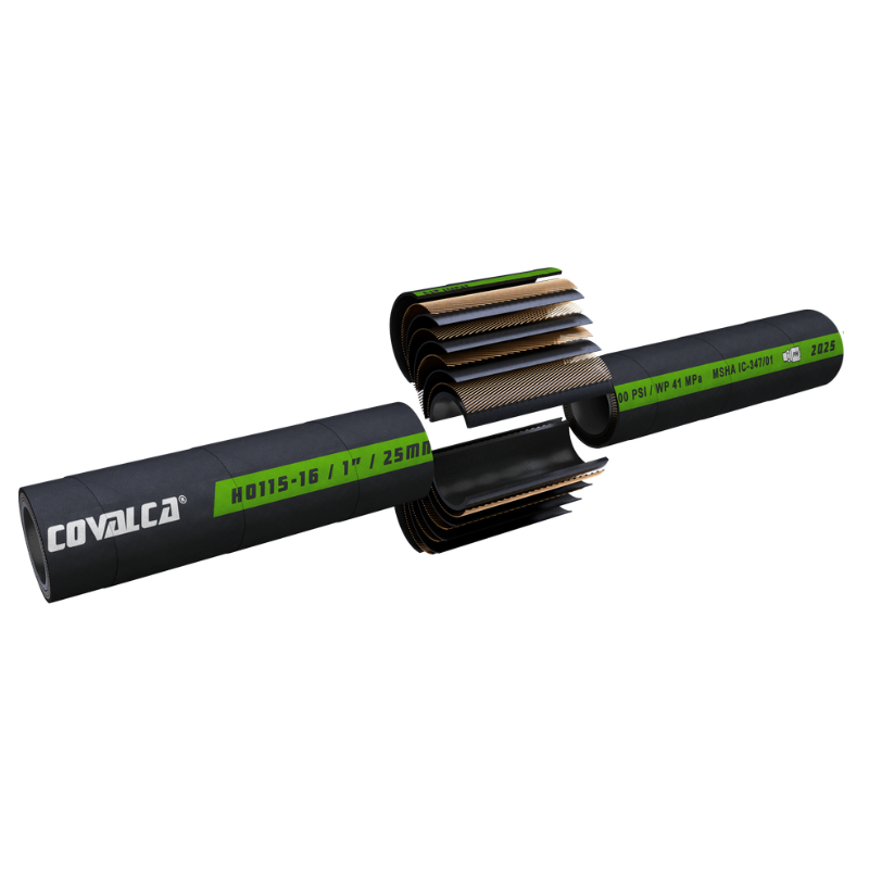 Cumple con las normas SAE 100R15 y EN 856, además de certificación MSHA IC-347/01, garantizando un rendimiento seguro y duradero en aplicaciones industriales de alta exigencia.
