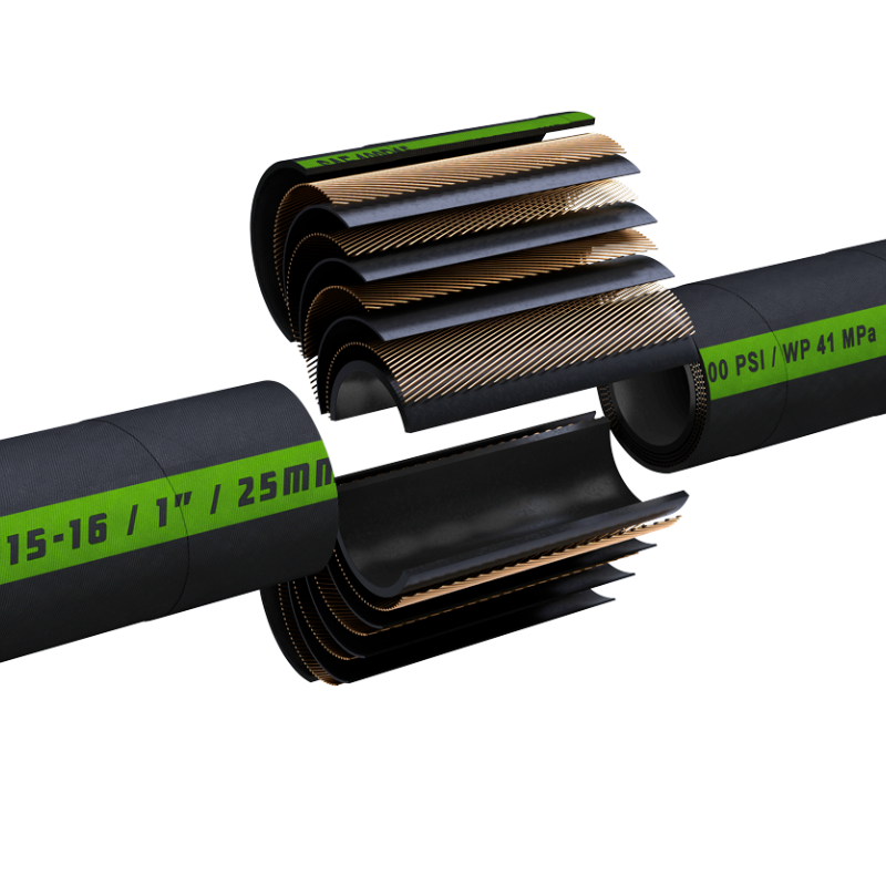 El tubo interno de goma sintética de nitrilo-butadieno resistente al aceite, junto con una cubierta exterior diseñada para soportar condiciones ambientales exigentes, la convierten en una solución confiable para sistemas hidráulicos que operan con aceites a base de petróleo.
